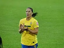 Bagé was recalled to the national team just before the 2011 FIFA Women's World Cup, where she played as a sweeper alongside Aline and Érika in a back three.[10] In Brazil's quarterfinal defeat by the United States, Bagé scored a second-minute own goal and had the only missed attempt for either team in the penalty shootout.[11] Nevertheless she retained the support of her teammates.[12]