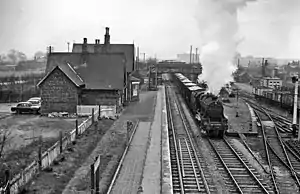 For most of the station's existence, the passenger trains were hauled by steam locomotives, but for a period up to the beginning of the Second World War, the services from Stockport and Baguley to Altrincham were performed by the CLC's Sentinel steam railcars. The station closed on 30 November 1964 [2] when passenger trains were withdrawn by British Railways. It was subsequently demolished.[3]