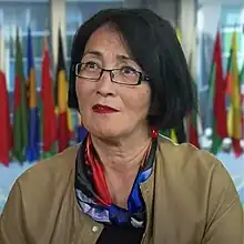 Bakhytzhan Toregozhina (Kazakh: Бақытжан Төреғожина; born 23 March 1962) is a Kazakhstani human rights activist who campaigned against the violations of fundamental rights in Kazakhstan for over two decades.[1] She has been the head of a coalition of civil societies, Qantar 2022, and the president of another Public Foundation, Ar.Rukh.Khak which represents Dignity, Spirit, and Truth.[2][3][4] She also organized various youth movements. Toregozhina was acclaimed as a leading voice representing victims of torture, abuse, and politicized repression.[5] On 8 March 2023, she received the 2023 International Women of Courage Award, which was presented to her and other nominees by Jill Biden and Anthony J. Blinken at the U.S. Department of State.[6]