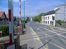 The automated main road crossing in 2003; the cottages to the right were occupied by railway porters