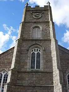 The windows of the sanctuary are in a Georgian Gothic style having the main outlines of the Perpendicular form but infilled with clear glazed casements in the Georgian manner. Substantial buttresses (to withstand the outward pressure of the side galleries) and corner pinnacles strengthen and enhance the otherwise plain exterior.