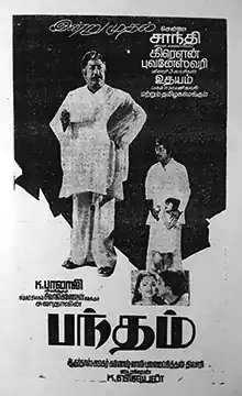 Bandham (transl. The Bond) is a 1985 Indian Tamil-language drama film, directed by K. Vijayan and produced by Anandavalli Balaji. The film stars Sivaji Ganesan, Kajal Kiran, Shalini and Anand Babu.[1] It is a remake of the Malayalam film Chakkarayumma. The film was released on 26 January 1985.[2] Shalini reprised her role in the Telugu remake with the same name.[3]