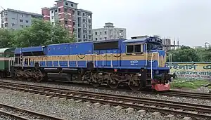 Bangladesh Railway Class 6600 is a class of 1,676 mm gauge diesel-electric locomotives owned by Bangladesh Railway. There are 40 locomotives of this class, all designed and manufactured by American company Progress Rail's Electro-Motive Diesel subsidiary. Class 6600 locomotives are used on both freight and passenger trains. Those are the strongest and most advanced broad-gauge locomotives in the Bangladesh Railway.[1][2][3]