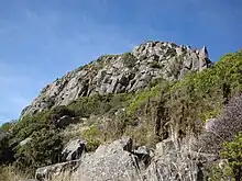 The Banks Peninsula Volcano is an extinct volcanic complex to the east of Christchurch on New Zealand's South Island.[2] While the volcano is highly eroded it still forms the majority of Banks Peninsula with a highest point of 919 m (3,015 ft).[3] It is a composite of two main eruptive centres one originating at Lyttelton Harbour, the other at Akaroa Harbour. The eruptions were predominantly basaltic, with associated andesite and trachytes, with minor rhyolite. The volcanic activity occurred in the Late Miocene and possibly extended into the Early Pliocene. There are four volcanic groups, all of which are within the Māui Supergroup.[4] The Christchurch earthquakes led to rumors of a possible eruption, however, there is no known magma chamber beneath the volcano and there has not been any sign of volcanic activity in the last 5 million years.[5]