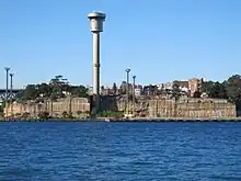 Barangaroo Reserve is a 6-hectare (15-acre) artificially recreated headland park at the northern end of Barangaroo. The park opened on 22 August 2015 and features a reconstructed, naturalistic headland based around the pre-1836 shoreline.[52] After 1836, the original headland and foreshore was cut away to make space for wharves and stevedoring activities as Sydney became a major international port. The new headland is inspired by what existed before 1836 and restores the relationship with other headlands in Sydney Harbour. A design competition held in 2009-2010 was won by Johnson Pilton Walker, in association with PWP Landscape Architecture.[53] It was said the site was reconnecting Millers Point to the waterfront which re-establishes Sydney's first neighbourhood as one of contemporary and historic significance.[54] The parkland features grassed areas, lookouts, walking and cycle paths, two new harbour coves, and tidal rock pools created from sandstone excavated directly from the Barangaroo site.[53] However, the site itself is what was named Millers Point almost 200 years ago, and the Geographical Names Board upheld the Millers Point Community's objection to it being named Barangaroo Point.[55][56] The parklands included the Sydney Harbour Control Tower, built in 1974. The design of Barangaroo Reserve called for removal of the tower as it did not assimilate with the "natural" architectural goal for the reserve, however this attracted some public outcry. Demolition of the tower began in March 2016 and reached completion in January 2017.