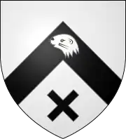Argent, on a chevron sable, an otter's head erased of the first, in base a saltire couped of the second