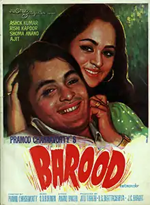Barood (transl.Gunpowder) is a 1976 Indian Hindi-language action crime film directed by Pramod Chakravorty, with screenplay by Sachin Bhowmick and dialogues by Ahsan Rizvi.[2] It stars Rishi Kapoor, Reena Roy and Shoma Anand in leading roles, with Dharmendra, Hema Malini and Ashok Kumar in supporting roles. The film was a commercial flop in India,[3] but went on to become an overseas blockbuster in the Soviet Union.[4]