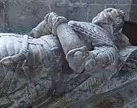The original house was built in about 1550 by the Humphrey family. At this time the owner of the property would have been William Humphrey (died 1591) and his wife Jane Lynne.[2] They inherited the manor in 1553. He also owned land in Swepstone and the church there contains his tomb with his effigy dressed as a knight which is shown. Barton Hall passed down through the Humphrey family until 1665 when Nathaniel Humphrey sold it to John Bridges.