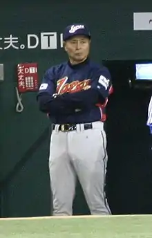Sadaharu Oh managing the Japan national team in the 2006 World Baseball Classic. Playing for the Central League's Yomiuri Giants (1959–80), Oh set the professional world record for home runs.