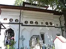 The earliest image of the church dates to 1813; the ink drawing, by a jacket maker and choir singer, shows a tall wooden fence and two cupolas apparently of stone. The same year, Calinic of Cernica was ordained a priest there. The church's first record book is from 1844. It mentions that the attached cells were occupied by priests as well as poor people, orphans and widows. It notes that the iconostasis is of wood, the murals old, the seven windows framed in stone, the wooden door plated with iron, and the cupolas and roof made of rather old fir boards. A similar work from 1850 reveals that the domes were coated in tin, indicating the structure was growing weaker in the wake of the 1838 earthquake. In 1869, Italian painter Domenico Preziosi executed a fine watercolor of the church; however, by around 1880, it was in a deplorable state. Repairs were carried out in 1883, but these only further damaged the structure.[1]