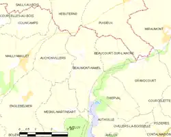 Modern map of the municipality Beaumont-Hamel. Serre is on the Mailly-Maillet–Puisieux road.