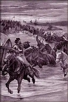 The Battle of Německý Brod (also Battle of Deutschbrod or Battle of Habry) took place on 10 January 1422, at Habry and Německý Brod in Bohemia, during the Hussite Wars. Led by Jan Žižka, the Hussites besieged the army of Royalist crusaders. The Roman Catholic crusaders were no match for the Hussites and Německý Brod was quickly taken and sacked. More than 500 mercenaries (548 according to the chronicles) drowned as they fled across the frozen Sázava River. During Žižka's dealings with the crusaders, part of his troops invaded Německý Brod, burned down almost the entire town and killed about 1,000–2,000 inhabitants, which was the majority of the population at the time.[1][2][3]