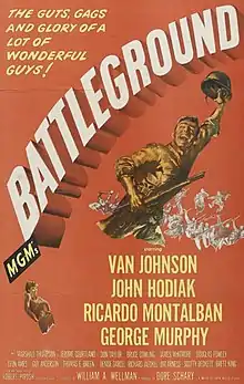 Battleground is a 1949 American war film that follows a company in the 327th Glider Infantry Regiment, 101st Airborne Division as they fight in the siege of Bastogne during the Battle of the Bulge, in World War II. It stars Van Johnson, John Hodiak, Ricardo Montalbán, and George Murphy, features James Whitmore, and was directed by William A. Wellman from a script by Robert Pirosh.