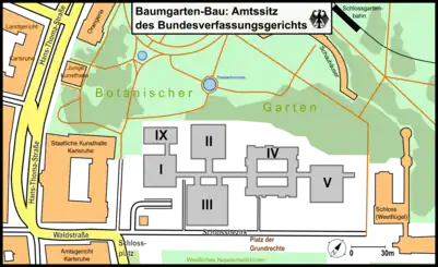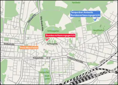 - ↑ "Pressemitteilung Nr. 80/2014: Das Bundesverfassungsgericht zieht zurück in den Karlsruher Schlossbezirk". Federal Constitutional Court. September 18, 2014. Retrieved October 31, 2023.