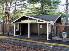 In 2019, the MBTA indicated that the four remaining non-accessible stops on the D branch were "Tier I" accessibility priorities.[11] A preliminary design contract for accessibility modifications at the four stations was issued in February 2021.[12][13] The station platforms will be raised and rebuilt, the wood shelter repaired, and a path constructed under Dean Road to Waldstein Playground.[14] Design reached 75% in June 2022 and was completed late that year.[14][15] As of November 2023, construction is expected to be advertised in early 2024 and begin midyear.[16]
