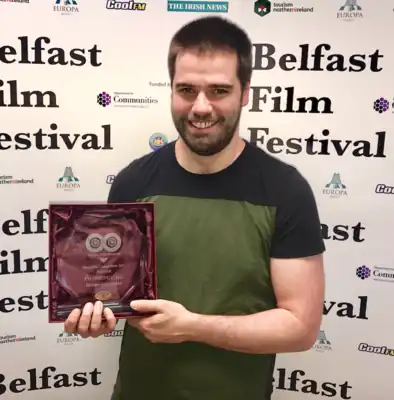 Eoin with his award for Best Short Film at the 17th Belfast Film Festival
