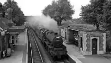 Berkeley Road, like Stonehouse to the north and Mangotsfield to the south, was considered one of the more important stations on the Bristol and Gloucester line and some long-distance trains called there.[2] The Sharpness branch, however, became less important and was reduced to single track in the 1930s. Damage to the Severn railway bridge in 1960 led the branch to cease being a through-route and passenger services were withdrawn in November 1964, though it remains open for some goods traffic.