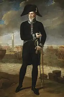 In February 1792 he married Herminie-Felicienne-Joséphine Tavernier de Boulogne de Magnanville and was posted to the Court of St. James's, styled "Ambassador's Cloak" (or Deputy Ambassador), under Talleyrand. His role in London was to persuade the British Government to remain neutral in the impending war between France and Austria and Prussia.[1] Arriving in May 1792, Chauvelin was well received at first[1] and secured British neutrality. However, on 10 August 1792, in light of the storming of the Tuileries and the formal suspension of King Louis XVI of France from power, Chauvelin's status became ambiguous - as his credentials had been issued by a non-ruling king and, moreover, Britain had recalled its own ambassador (and not replaced him), thereby ending official communication. Following the formation of the French Republic in September, the new French republican government did not promptly renew his credentials, ending what remained of his official status at the Court of St James. Despite Chauvelin's claims to continue as interim representative of France until the arrival of his new credentials (he believed them imminent), foreign secretary William Grenville refused to recognize him as officially speaking for the French republic and returned his papers and missives.[3] Chauvelin finally received his new credentials from the French republic in January 1793 and requested an audience with the British king to present them.[4] But the timing was inauspicious - Louis XVI had been sentenced to death by the French convention the day before, and would be executed a few days later (21 January). Chauvelin was ordered to leave England by 1 February 1793, as the British made preparations for war.[5]