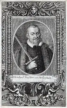 Bernhard II. von Herberstein (1566 - 30 July 1624) was an Austrian nobleman, who was Reichsfreiherr of Neuberg and Gutenhag, Prince of Lankowitz in the Duchy of Carinthia, and Lord of the lordships of Herberstein, Reifenstein and Krems.[1][2][3][4][5]