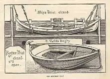 Berthon Boats are collapsible lifeboats used in the late 19th and early 20th centuries. They have double linings of canvas, sectioned into watertight envelopes that assist buoyancy and give protection from the possibility that the outer canvas could be accidentally torn. The canvas was also coated with "linseed oil, soft soap, and yellow ochre" to make it waterproof.[1]