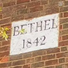 Bethel Strict Baptist Chapel (also described as Bethel Calvinist Chapel)[1] is a former place of worship for Strict Baptists in Robertsbridge, a village in the district of Rother in the English county of East Sussex. Partly hidden behind ancient buildings on the village High Street, the simple brick chapel was erected in 1842 on the initiative of James Weller, a "somewhat remarkable man" whose preaching had attracted large audiences across Kent and East Sussex in the previous decade. The Strict Baptist cause was historically strong in East Sussex, and Protestant Nonconformism thrived in Robertsbridge, which was distant from the nearest Anglican parish church. The chapel closed in about 1999, and permission was granted for its conversion into a house. English Heritage has designated it a Grade II Listed building.