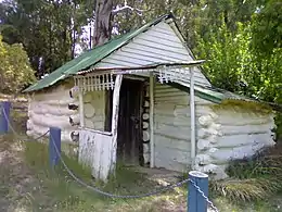 Wheeler's Tramway on Mount Wilson (accessible via Lerderderg Road) is a “comparatively intact example of a log tramway formation” of historical and archaeological significance. It was constructed in about 1878 by James Wheeler to provide logs for his sawmill on the Lerderderg River. The tramway extends about 800 metres along a creek and features “well preserved impressions of foundation timbers, a short siding and a rock-cut ledge to accommodate the log line”. The structure was abandoned when the sawmill closed in 1898. Wheeler's Tramway is listed on the Victorian Heritage Register.[17]