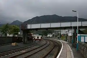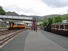 Blaenau Ffestiniog railway station serves the slate mining town of Blaenau Ffestiniog, Wales, and is the passenger terminus of the Conwy Valley Line from Llandudno Junction. Transport for Wales Rail operate through services to Llandudno Junction and Llandudno. The station is a joint station with the narrow gauge Ffestiniog Railway, which operates primarily tourist passenger services to Porthmadog throughout most of the year. A feature of the standard gauge service is the availability on trains and buses of the popular "Gwynedd Red Rover" day ticket.