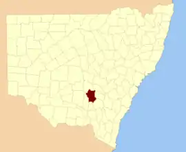 WyrraBland Shire33°49′54″S 147°17′04″E / 33.83167°S 147.28444°E / -33.83167; 147.28444 (Wyrra)
