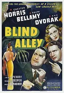 Blind Alley is a 1939 American film noir crime film directed by Charles Vidor and stars Chester Morris, Ralph Bellamy and Ann Dvorak. The film was adapted from the Broadway play of the same name by James Warwick.