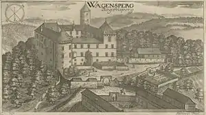 Bogenšperk Castle (pronounced [ˈboːɡɛnʃpɛɾk]; Slovene: Grad Bogenšperk, German: Schloss Wagensperg) is a 16th-century castle located in the Municipality of Šmartno pri Litiji in central Slovenia. It is best known for its association with the 17th-century scientist and natural historian Johann Weikhard von Valvasor, a fellow of the Royal Society in London.