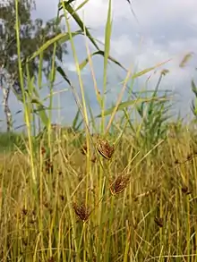 Bolboschoenus planiculmis is a perennial clonal plant with a height of 20–100 centimeters that reproduces both sexually through seeds and asexually through vegetative propagation.[4] As the fruits of B. planiculmis are floatable, it has been suggested that spreading after floods is a possible means of distribution.