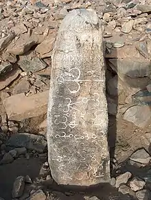 The Bombogor grave complex is situated in Shiveeny Kherem district, Bayankhongor Province, Mongolia.[5] The monument was discovered as a result of the expedition made by the scientists from the Archeology Institute of the Academy of Sciences of Mongolia. Relevant pictures and draft copy of the text of the inscription were published immediately after its discovery.[6]