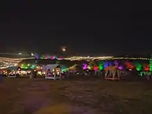 Hippie Highway, a central route through the site, at night in 2019