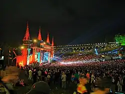 Across the four areas of Temple Valley, Hilltop, Downtown and Forgotten Valley there are 14 separate districts, each with an individual identity seen through the set dressing, wandering theatrical performances, and music genres on show. Each district has at least one main stage and a selection of smaller street or theatrical venues as well as small and medium-sized music venues.[22] The festival contains over 25 'main' stages and an additional 80 street venues.[23]