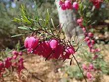 Boronia deanei, commonly known as Deane's boronia,[2] is a plant in the citrus family Rutaceae and is endemic to the central and southern highlands of New South Wales. It is an erect shrub with crowded, strongly aromatic leaves and white to bright pink flowers in late winter and spring.