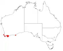 Pink boronia grows in stony and sandy soils on rock outcrops, in gullies and along watercourses in the Esperance Plains biogeographic region, especially in the Stirling and Porongorup Ranges.[2][3]