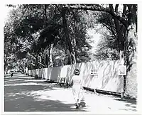 Fences on the edge of an early Boston Arts Festival in Boston Public Garden.