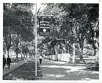 The original Festival, briefly named the "Boston Art Festival," was held at Boston's Public Garden between 1952 and 1964.[6] That version is credited with democratizing access to the fine arts in Boston, especially for young, emerging and often Jewish-American, artists who felt shut out of Boston's famously Brahmin museums and other institutional exhibition sites. Activist artists, either linked by the Boston Museum School or the Boris Mirski Gallery founded the Boston Arts Festival. The first Festival debuted on June 12, 1952,[6][7] and displayed fine art in tents in the Public Garden, and provided free performances in nearby Boston Common. This represented a major break in how art was presented in New England. No longer confined to the monied and the elite, the early Festivals provided avant garde artists with a forum in which to show their work, compete and interact with one another. That exchange of ideas and influences developed into the earliest form of American Figurative Expressionism, known as Boston Expressionism.