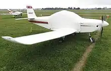 The Cherry seats two, in side-by-side configuration under a large, almost fully transparent, forward sliding canopy. It has a retractable tricycle undercarriage, with simple, outward folding main gear.[2] A non-retractable undercarriage is an option.[1] The prototype was powered by a 65 hp (49 kW) Continental A65 flat four engine; since then, Cherrys have used flat fours with power of up to 100 hp (75 kW), including some from the Continental range, the Volkswagen-derived Limbach L.2400 and the Rotax 912.[2][3] Also the flat 2-cylinder motorcycle derived BMW R1200GS has been used.[4]