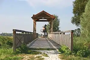 The Brücke von Andau (Hungarian: Mosontarcsai híd or Andaui híd) is a small bridge over the Einserkanal / Hanság-főcsatorna, a small artificial river which forms part of the border between Austria and Hungary. It is located near to the village of Andau (Burgenland, Austria).