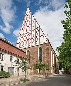 The theatre was destroyed during the Second World War and its ensemble and the orchestra both moved to the Musiklandheim, built in 1928-1929 by Otto Bartning - in 1952 it was renamed the Kleist-Theater. Some of the theatre's musicians founded the separate Frankfurter Kulturorchester in 1953, which was renamed the Philharmonische Orchester Frankfurt (Oder) in 1971. The orchestra made its first appearance at the Choriner Musiksommer in 1973.