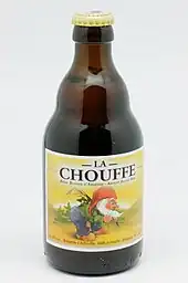 • La Chouffe, a blond beer (8% ABV), available in 33cl and 75cl bottles, magnum (called "Big Chouffe") and 20l barrels.
