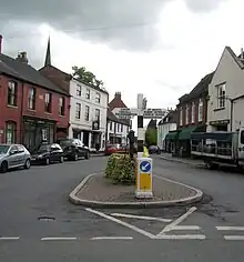 The market, the grand church and the grammar school mark out Brewood as a small town, not just a village, by the standards of this period, and it was sometimes referred to as the Borough of Brewood. Around 1680, the township had about 60 houses, but this had grown to 210 houses, with a population of 919 by 1811.[16] In 1834 William White described Brewood as "a small but well-built market town, with several good streets and a spacious market-place."[17] The historic centre consisted of the market place, with Bargate, Newport and Stafford Streets, and Sandy Lane meeting at it. Dean Street, south-east of the church was another important old street. These still contain many houses of considerable age, mostly Georgian, but with many also from the 16th and 17th centuries. They form a large proportion of the many listed buildings in the parish of Brewood and Coven.[18] Speedwell Castle, in Bargate, is a striking eighteenth-century house said to have been built from the proceeds of a bet on a horse.