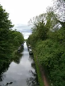 Coven had already received a great stimulus from the improvement of communications. The main road between Wolverhampton and Stafford, which passed very close to Coven, was turnpiked under an Act of 1760. The Staffordshire and Worcestershire Canal was built between 1768 and 1772, passing very close to Coven, and bringing into existence the hamlet of Coven Heath, just beyond the southern boundary of the parish at that point. Both of these were vast improvements in their day. Coven was brought much closer to the growing urban centres of the Industrial Revolution, just as Brewood town was passed by. As a result, most of the growth in population and the new housing within the parish, through to the early 20th century, appeared either at Coven or along the Kiddemore Green Road to Bishops Wood, not in Brewood itself.[22]