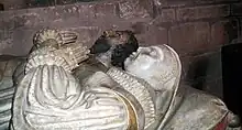 The church contains a large number of memorials, mainly of local gentry families. These include four large marble tombs of the Giffard family, dating from the 16th and 17th centuries, as well as a fine monument to the members of the Moreton family, and a large memorial inscription for the Monckton family, the later members of the family being buried at Coven, though remembered here. Located to the rear of the church, next to an Oak Tree, is a small worn gravestone, a Victorian replacement for a lost original monument, marking the final resting place of Sir William Careless, a local Recusant who played an important part in the escape of Charles II from the parliamentary forces after the Battle of Worcester. The churchyard also contains the war graves of four soldiers of World War I and two of World War II.[49]