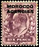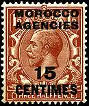 On 1 January 1907, the British Post Office took direct control of the post offices, operating them until Moroccan independence in 1956. From that point on, all stamps were overprints on British issues, in no less than three different currencies.[2]