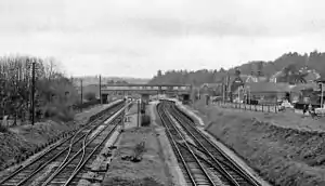 Broadstone was a railway station in the northern part of the Borough of Poole in the county of Dorset in England. It opened in 1872 under the name of New Poole Junction and closed to passengers in 1966. Between these dates there were several changes of name for a station which at its height provided a suburb of Poole with four substantial platforms and a goods yard. A prominent feature of the station was the large footbridge needed to span the four running lines.