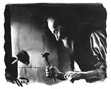 The industry featured in Robert Sherard's book The White Slaves of England in 1897, which includes a detailed picture of nailmaking in its final years.[lower-alpha 12] At this time, working weeks of 70–90 hours were commonplace and poverty still widespread.[58] Their diet was typically bread, margarine and tea, with cheese as an occasional supplement, and sometimes meat. Chickens and pigs were often kept as another way to supplement their diet.[59]