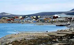 The only community on the island is Qikiqtarjuaq with a population of 593.[4] It is one of only eleven islands, out of more than 36,000, in the Arctic Archipelago that are inhabited. The Inuit residents of Qikiqtarjuaq moved there in 1963 from a whaling station at Kivitoo about 50 km (31 mi) north.