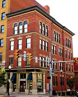 Brown Building, also known as the Ream Building, is a historic commercial building located at Morgantown, Monongalia County, West Virginia. It was designed in 1898 by noted Morgantown architect Elmer F. Jacobs. It is a four-story eclectic style brick building. It has a flat roof and projecting cornice. It has a ball finial and parapet centered on the front facade. It features polychromatic brick detailing, accentuated bays and a triad of double-sash windows[2]